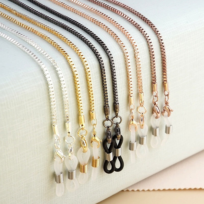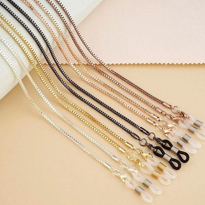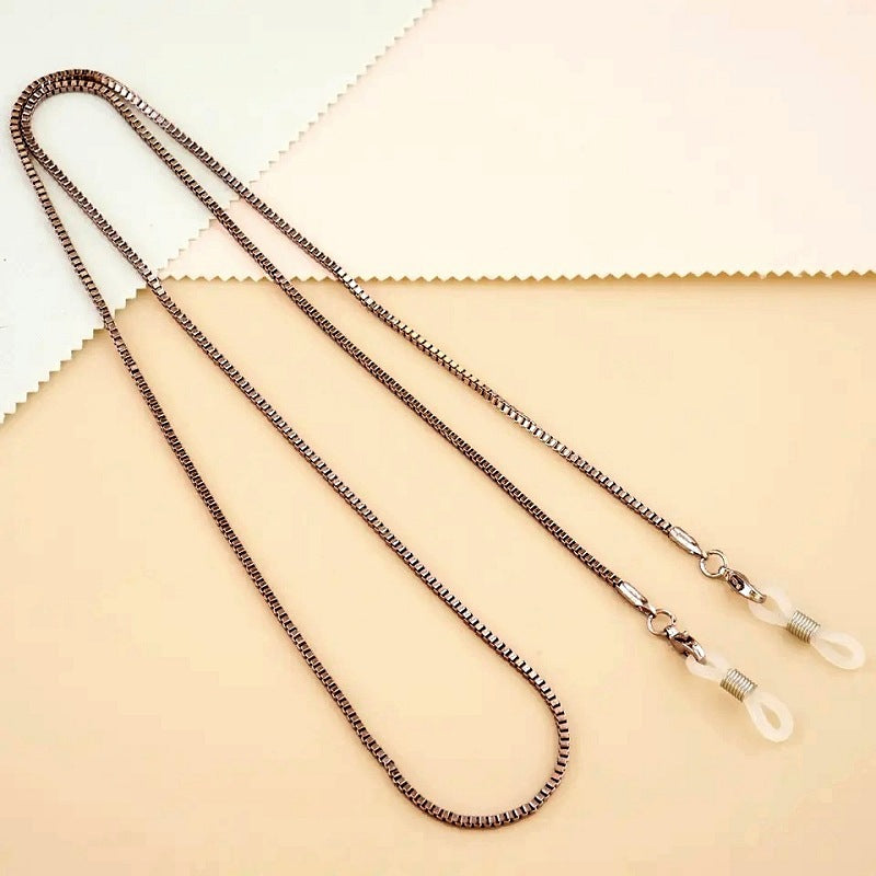 This 75cm reading glasses chain combines understated elegance with functionality. Crafted with precision, the fine 1mm box chain is a timeless design, suitable for any occasion, from formal events to casual outings. Adjustable rubber end loops keep your glasses close at hand while maintaining a sleek and minimalist look. Available in 5 finishes.