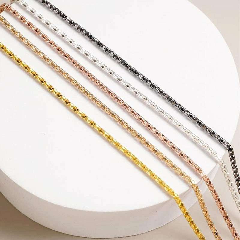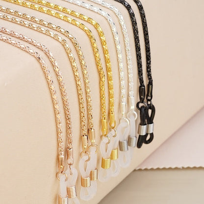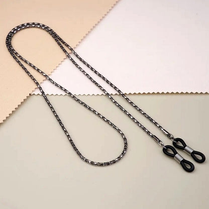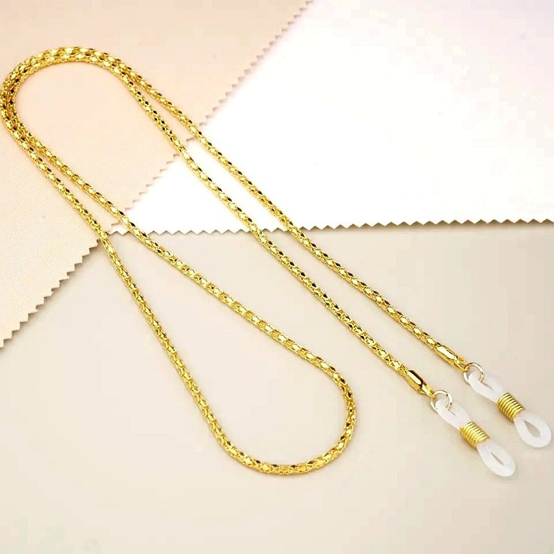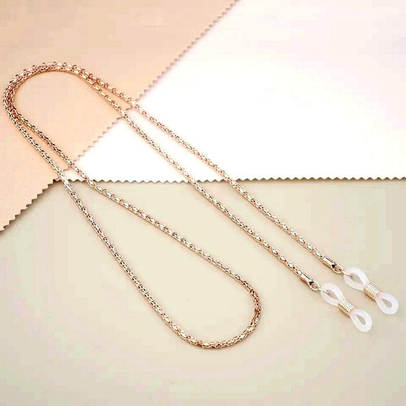 A 75cm hollow franco reading glasses chain that combines understated elegance with functionality. This finely crafted fine 2mm chain is a timeless design, suitable for any occasion, from formal events to casual outings. Adjustable rubber end loops keep your glasses close at hand while maintaining a sleek and minimalist look. Available in 5 finishes.