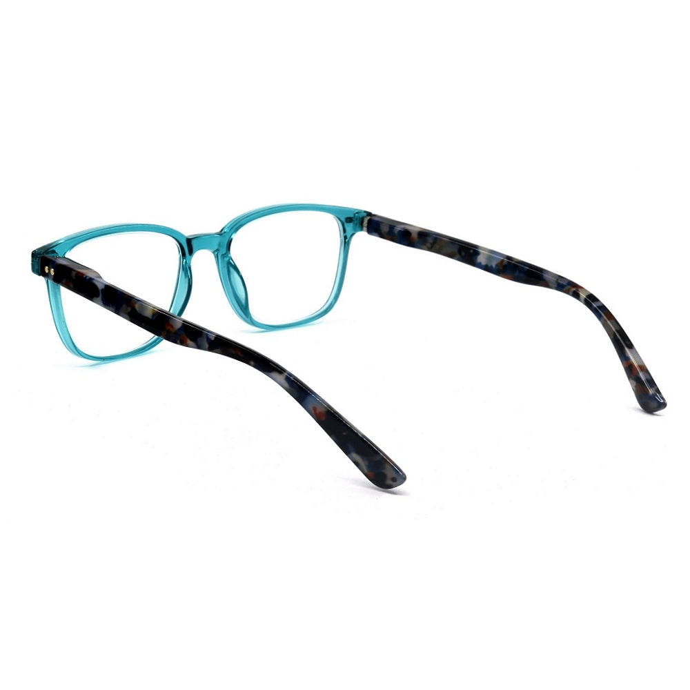 - Colour: Transparent aqua front, mottled dark aqua tortoise shell arms
